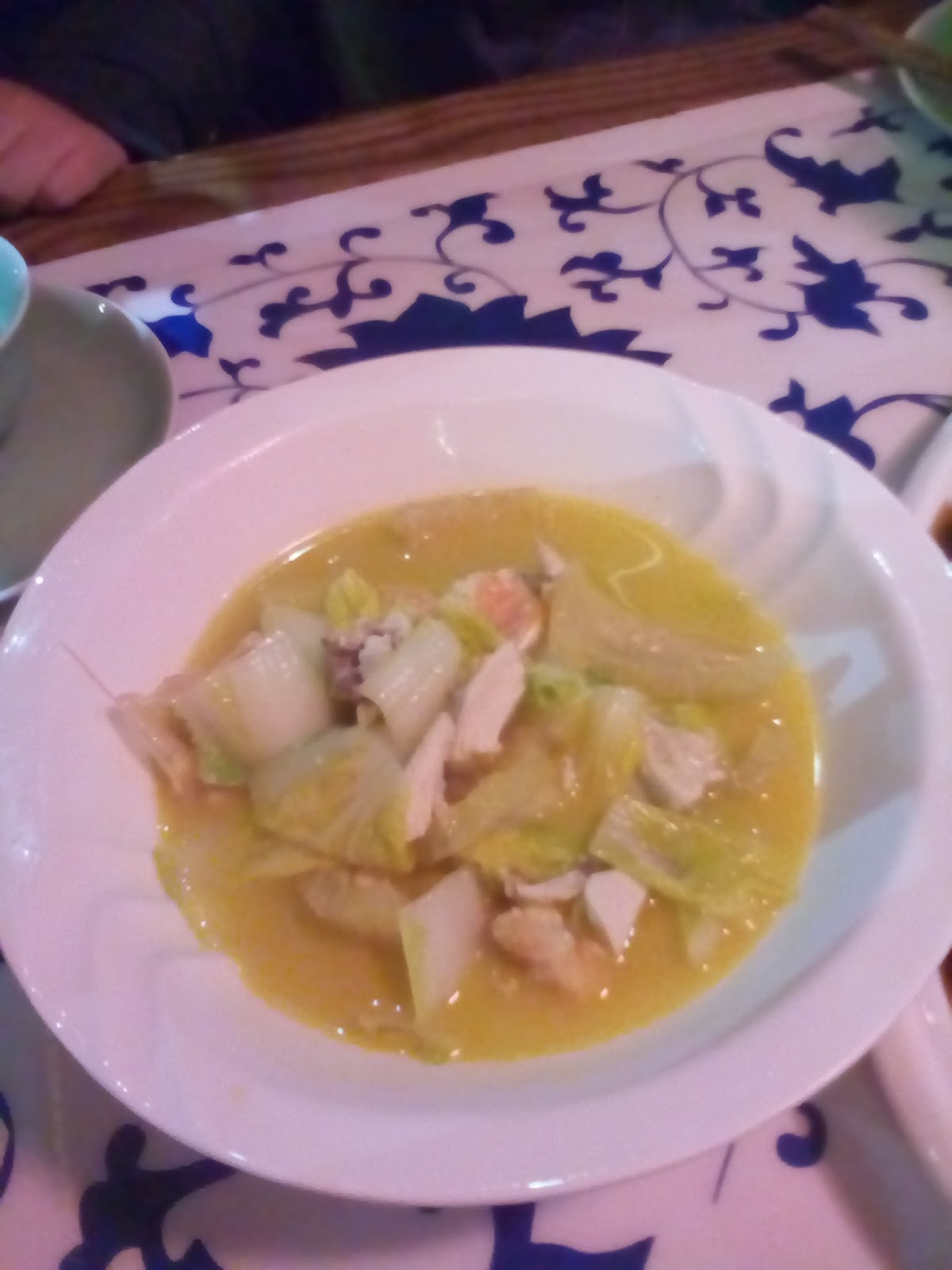 Before the light show, we decided to get dinner, which took a while due to the holiday, but Rebecca and Hardman ordered us a bunch of dishes. It turned out that the cook was still on holiday, so we couldn't get the chicken dish, but we still had plenty.